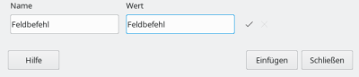 Und geben den, mit den gewünschten Daten übereinstimmenden, Namen des Feldbefehls aus der Liste von Feldbefehl unter ”Text“ dort ein und drücken ”Einfügen“.