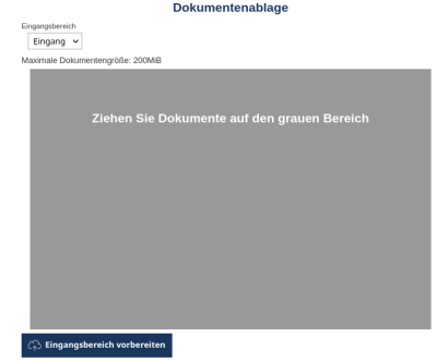 Um Dokumente hochzuladen, wählen Sie einen Eingangsbereich und ziehen Sie das gewünschte Dokument auf den grauen Bereich.